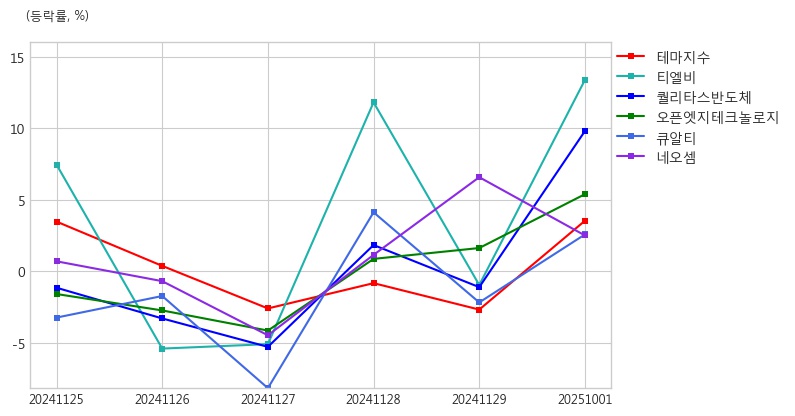 <그래프> CXL(컴퓨트익스프레스링크) 테마 주요 종목 등락률