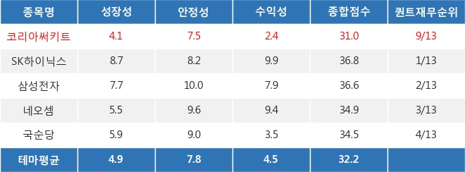 ◆코리아써키트의 퀀트 재무 점수 30.95점, 테마 내 9위