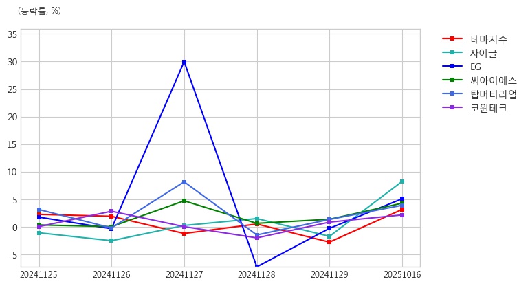 <그래프> 2차전지(LFP/리튬인산철) 테마 주요 종목 등락률