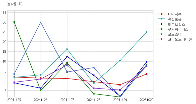<그래프> 로봇(산업용/협동로봇 등) 테마 주요 종목 등락률