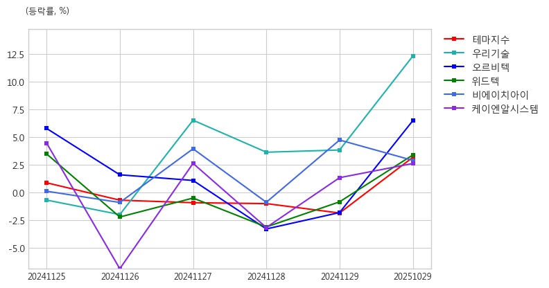 <그래프> 원자력발전소 해체 테마 주요 종목 등락률