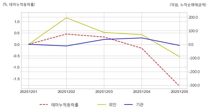 3D 프린터 테마는 최근에 소폭의 조정이 있었지만 오늘 다시 반등을 시도하며 전일 대비 3.46% 상승하고 있다. 이 기간 동안 개인 투자자들이 관련 종목을 꾸준히 사모아 139.63억원어치 순매수했으며, 외국인과 기관은 관련 종목을 각각 -90.53억원, -8.69억원 순매도 한 것으로 나타났다.