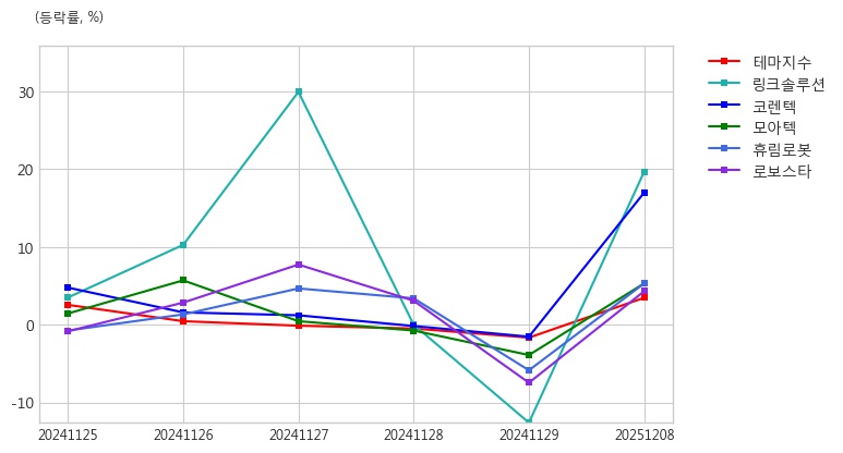 <그래프> 3D 프린터 테마 주요 종목 등락률